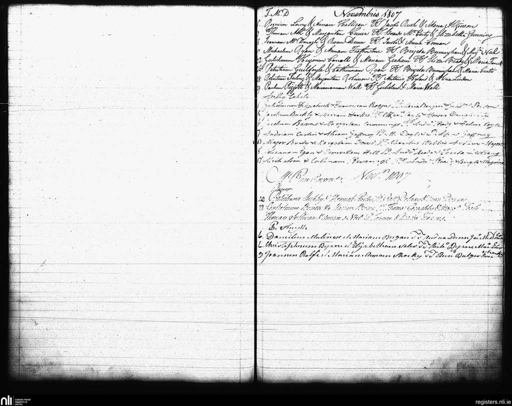 St. Andrew's, Dublin city; County of Dublin; Archdiocese of Dublin. Marriages, Nov. 1807