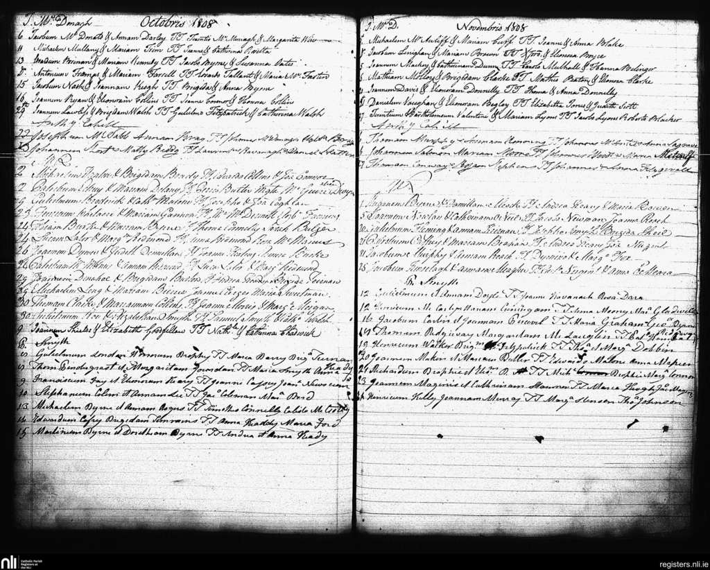 St. Andrew's, Dublin city; County of Dublin; Archdiocese of Dublin. Marriages, Oct. 1808 to Nov. 1808