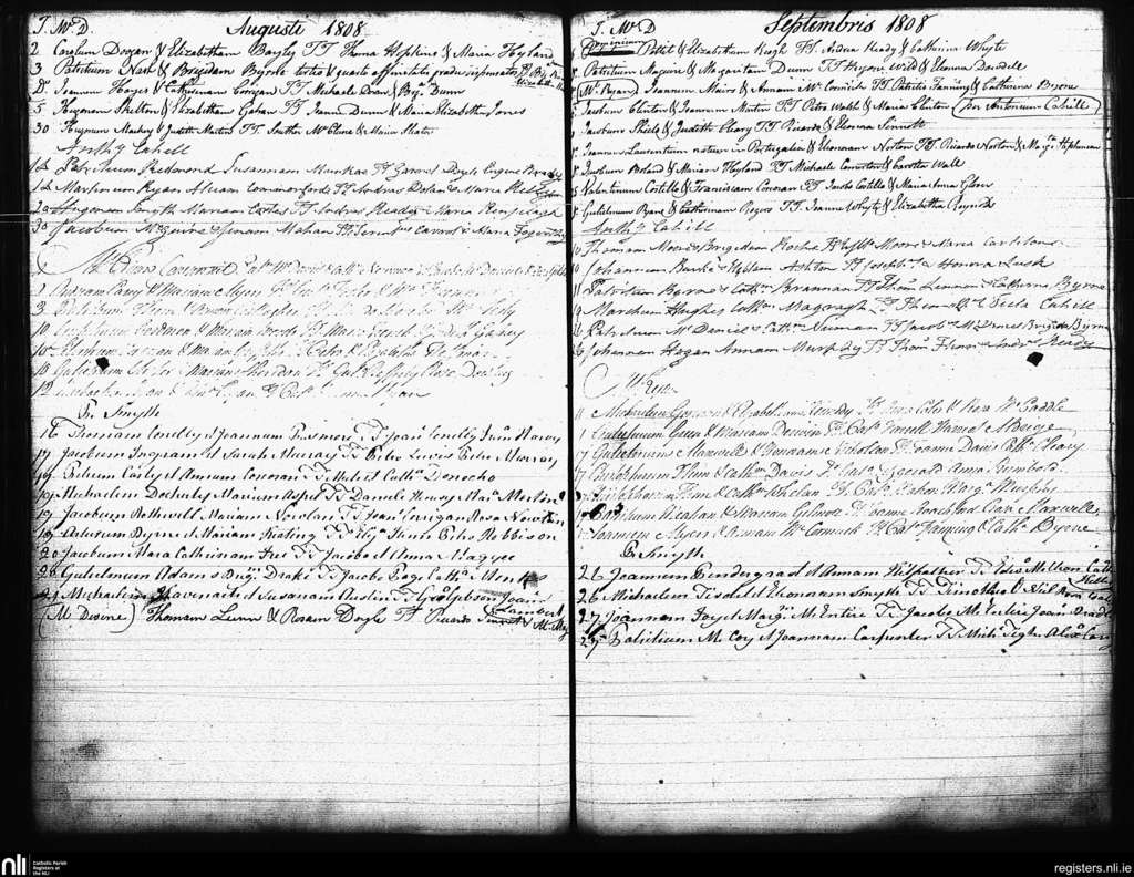St. Andrew's, Dublin city; County of Dublin; Archdiocese of Dublin. Marriages, Aug. 1808 to Sep. 1808