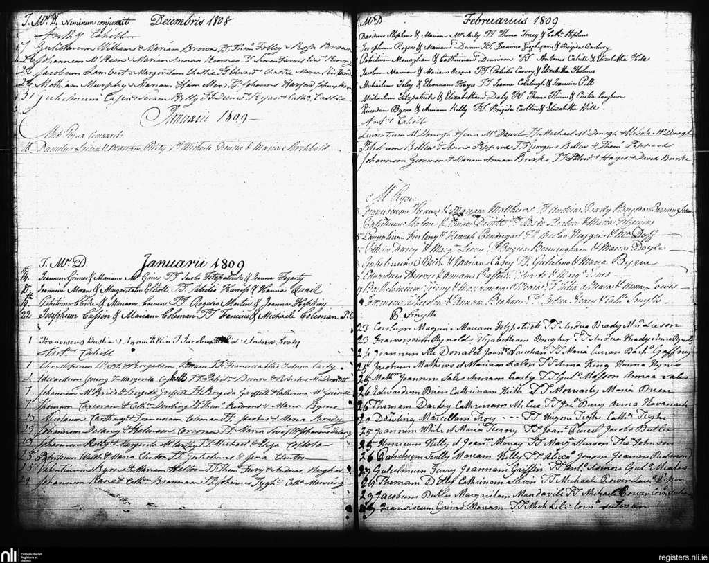 St. Andrew's, Dublin city; County of Dublin; Archdiocese of Dublin. Marriages, Dec. 1808 to Feb. 1809