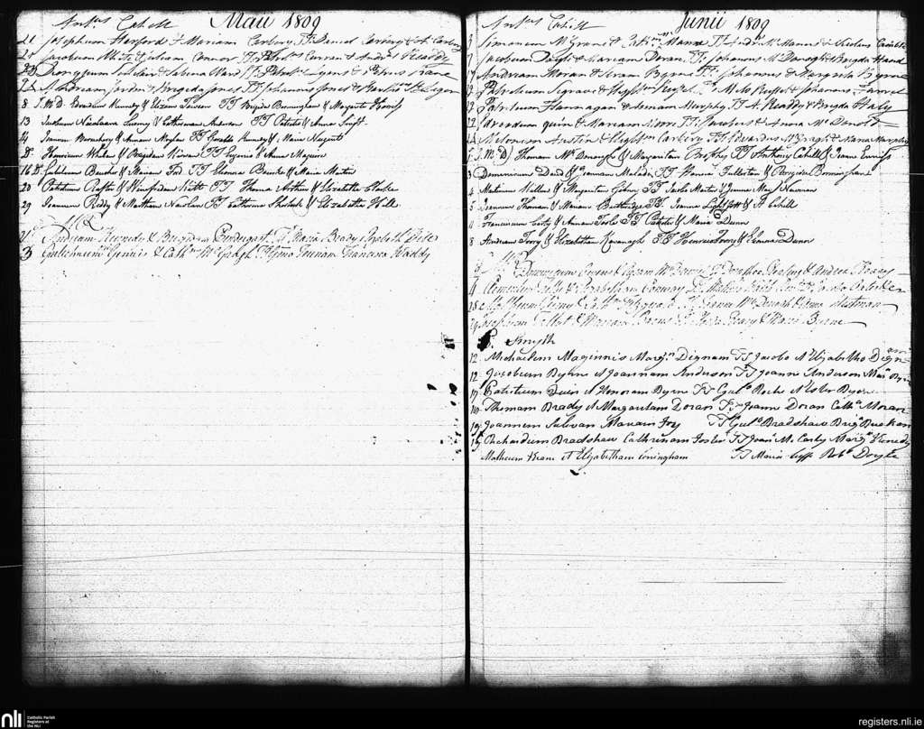 St. Andrew's, Dublin city; County of Dublin; Archdiocese of Dublin. Marriages, May 1809 to June 1809