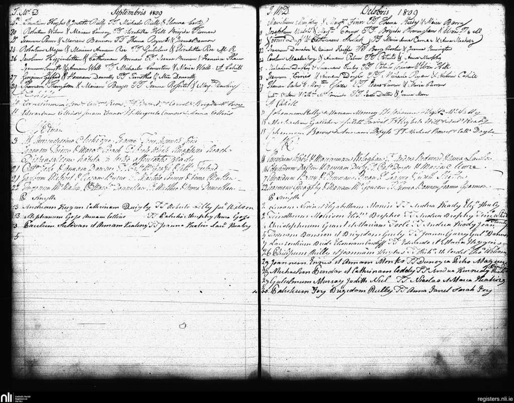 St. Andrew's, Dublin city; County of Dublin; Archdiocese of Dublin. Marriages, Sep. 1809 to Oct. 1809