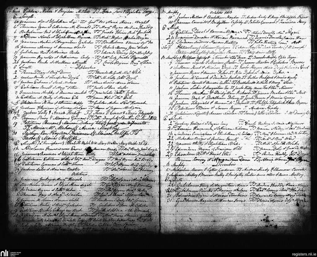 St. Andrew's, Dublin city; County of Dublin; Archdiocese of Dublin. Marriages, Aug. 1813 to Dec. 1813