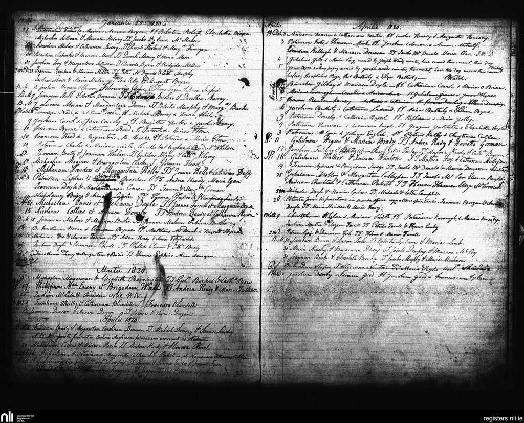 St. Andrew's, Dublin city; County of Dublin; Archdiocese of Dublin. Marriages, Jan. 1820 to Apr. 1820