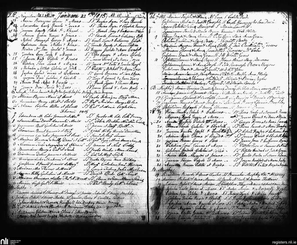 St. Andrew's, Dublin city; County of Dublin; Archdiocese of Dublin. Baptisms, Jan. 1815 to Feb. 1815