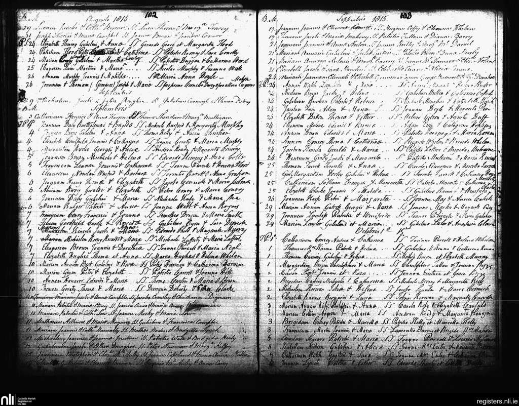 St. Andrew's, Dublin city; County of Dublin; Archdiocese of Dublin. Baptisms, Aug. 1815 to Oct. 1815