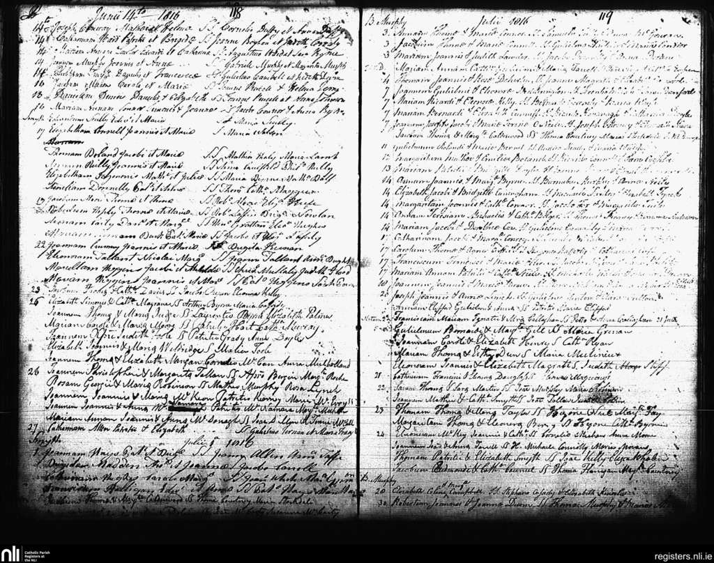 St. Andrew's, Dublin city; County of Dublin; Archdiocese of Dublin. Baptisms, June 1816 to July 1816