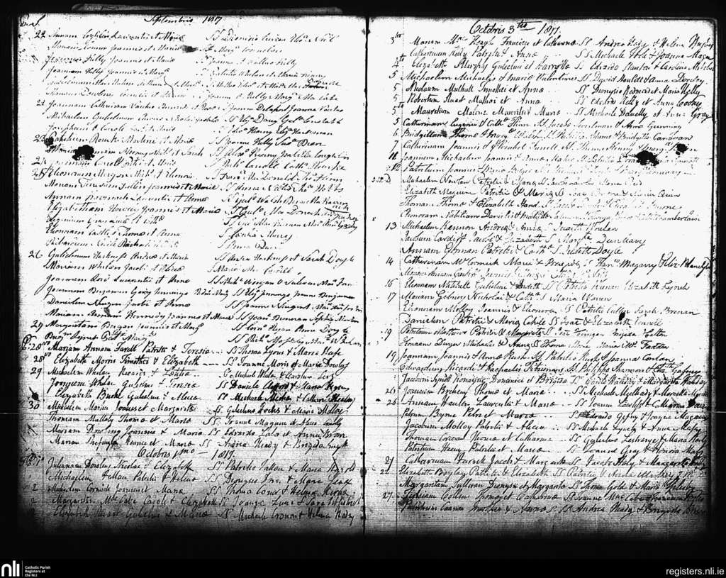 St. Andrew's, Dublin city; County of Dublin; Archdiocese of Dublin. Baptisms, Sep. 1817 to Oct. 1817