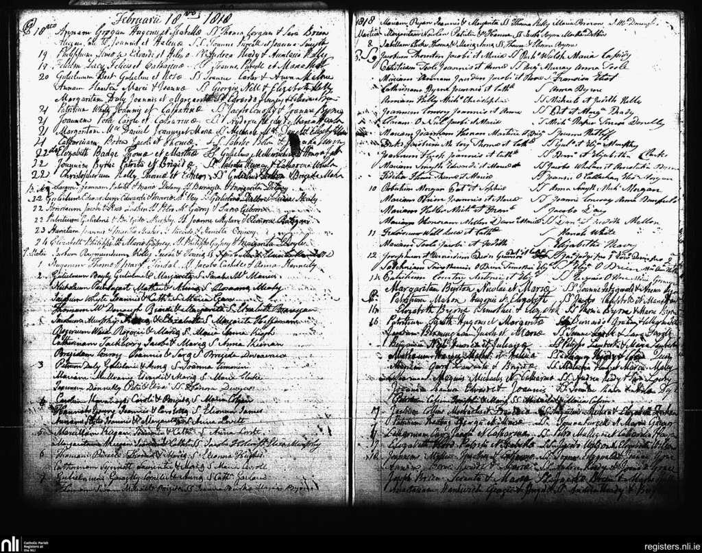 St. Andrew's, Dublin city; County of Dublin; Archdiocese of Dublin. Baptisms, Feb. 1818 to Mar. 1818