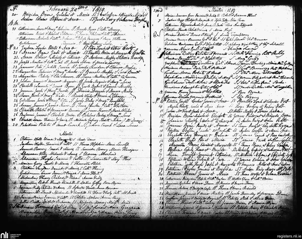St. Andrew's, Dublin city; County of Dublin; Archdiocese of Dublin. Baptisms, Feb. 1819 to Mar. 1819