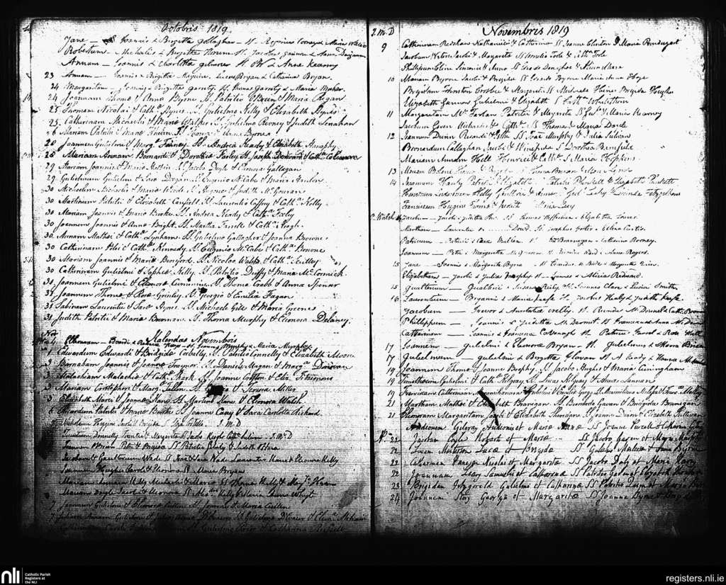 St. Andrew's, Dublin city; County of Dublin; Archdiocese of Dublin. Baptisms, Oct. 1819 to Nov. 1819