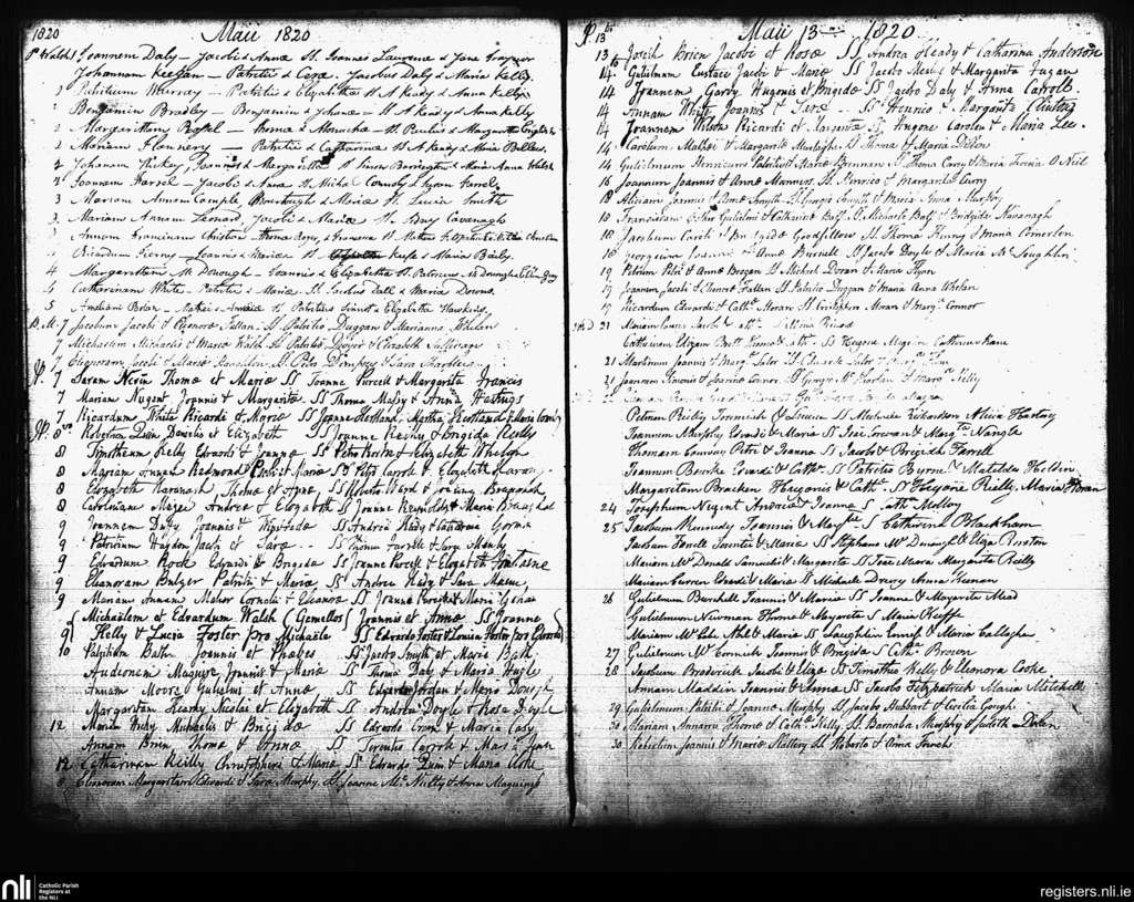 St. Andrew's, Dublin city; County of Dublin; Archdiocese of Dublin. Baptisms, May 1820