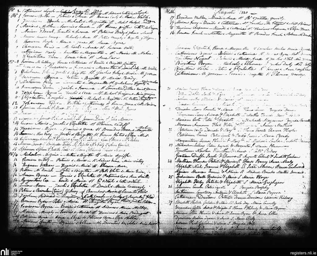 St. Andrew's, Dublin city; County of Dublin; Archdiocese of Dublin. Baptisms, Aug. 1820