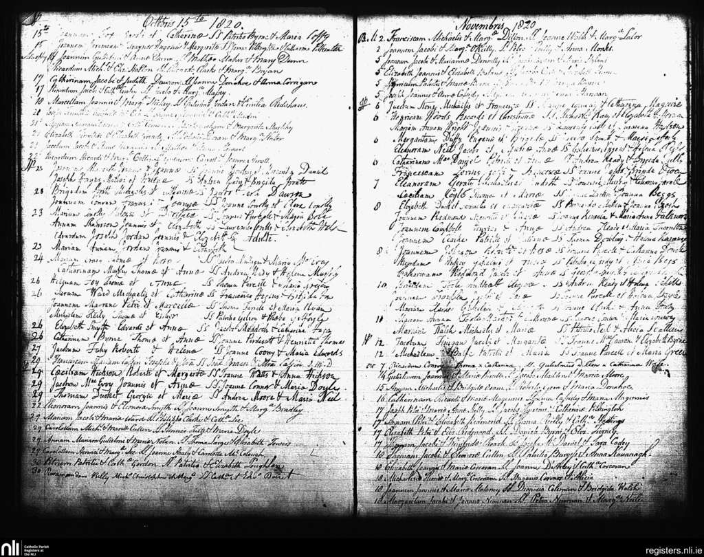St. Andrew's, Dublin city; County of Dublin; Archdiocese of Dublin. Baptisms, Oct. 1820 to Nov. 1820