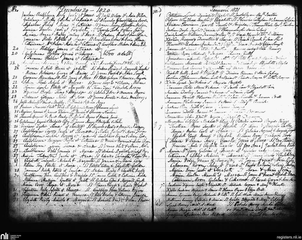 St. Andrew's, Dublin city; County of Dublin; Archdiocese of Dublin. Baptisms, Dec. 1820 to Jan. 1821