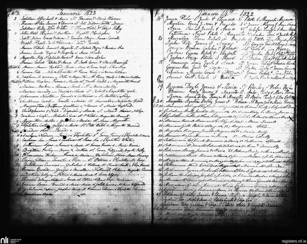 St. Andrew's, Dublin city; County of Dublin; Archdiocese of Dublin. Baptisms, Jan. 1822