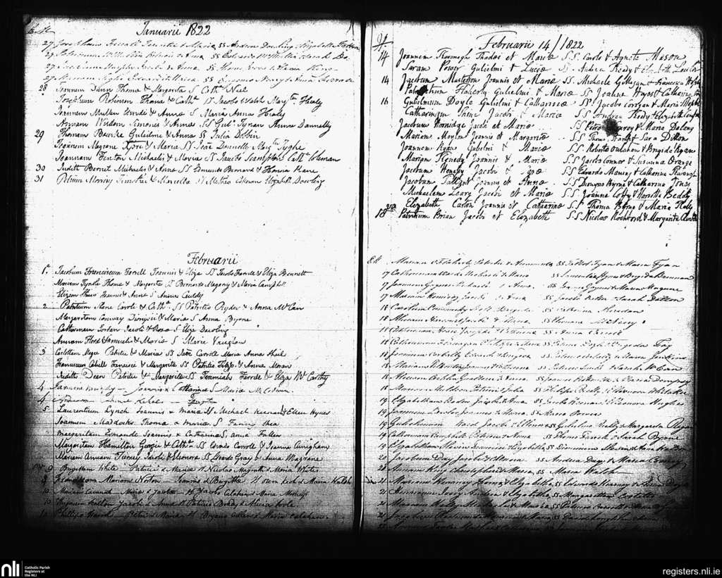 St. Andrew's, Dublin city; County of Dublin; Archdiocese of Dublin. Baptisms, Jan. 1822 to Feb. 1822