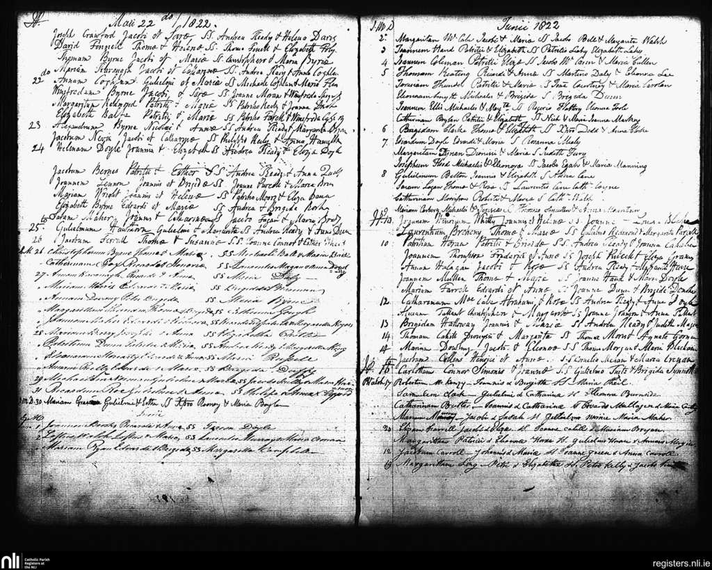St. Andrew's, Dublin city; County of Dublin; Archdiocese of Dublin. Baptisms, May 1822 to June 1822