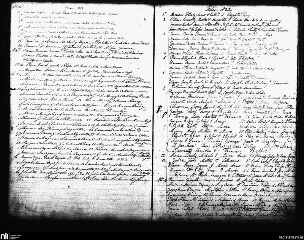 St. Andrew's, Dublin city; County of Dublin; Archdiocese of Dublin. Baptisms, June 1822 to July 1822