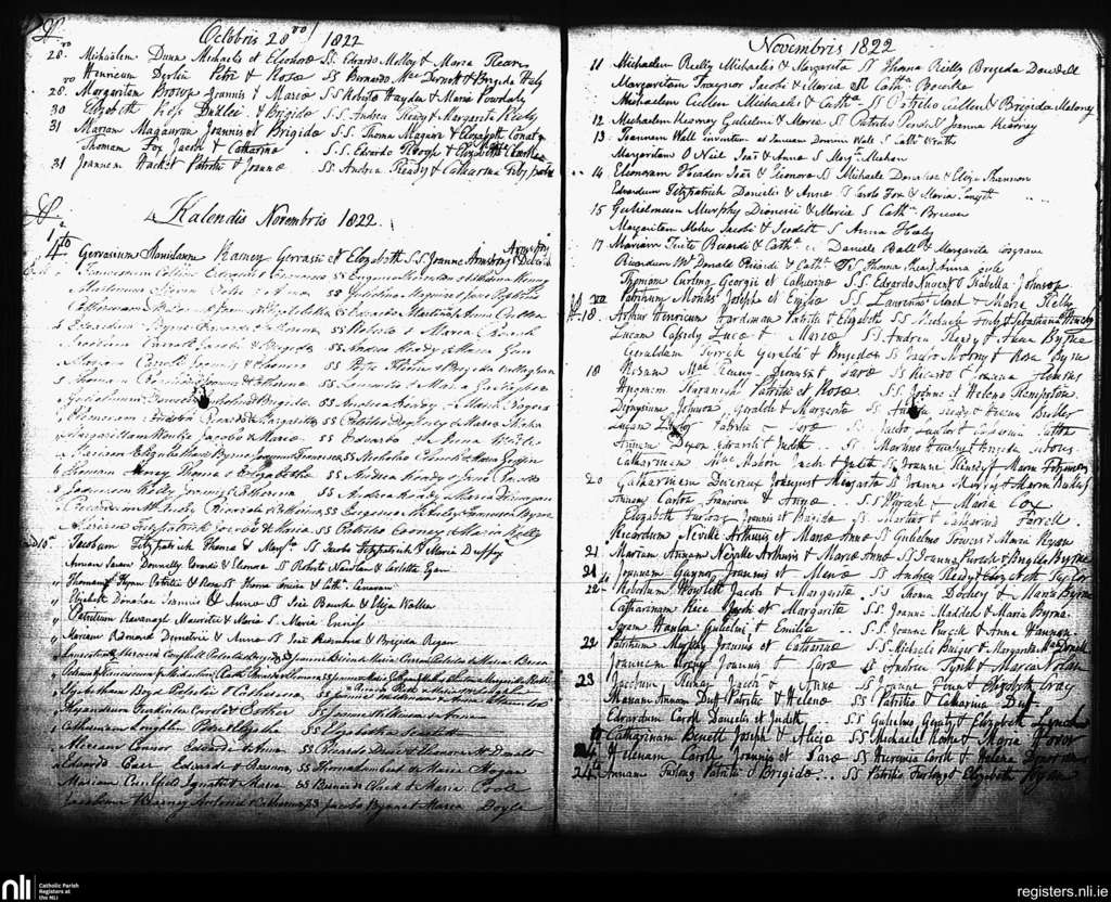 St. Andrew's, Dublin city; County of Dublin; Archdiocese of Dublin. Baptisms, Oct. 1822 to Nov. 1822