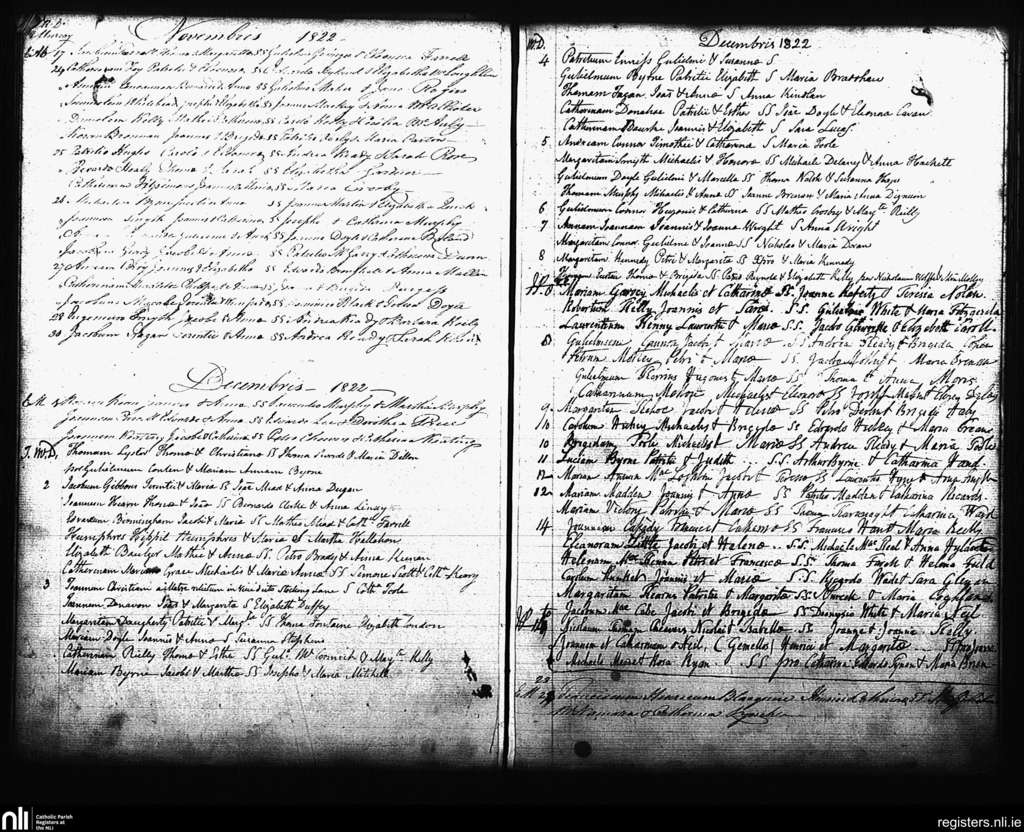 St. Andrew's, Dublin city; County of Dublin; Archdiocese of Dublin. Baptisms, Nov. 1822 to Dec. 1822