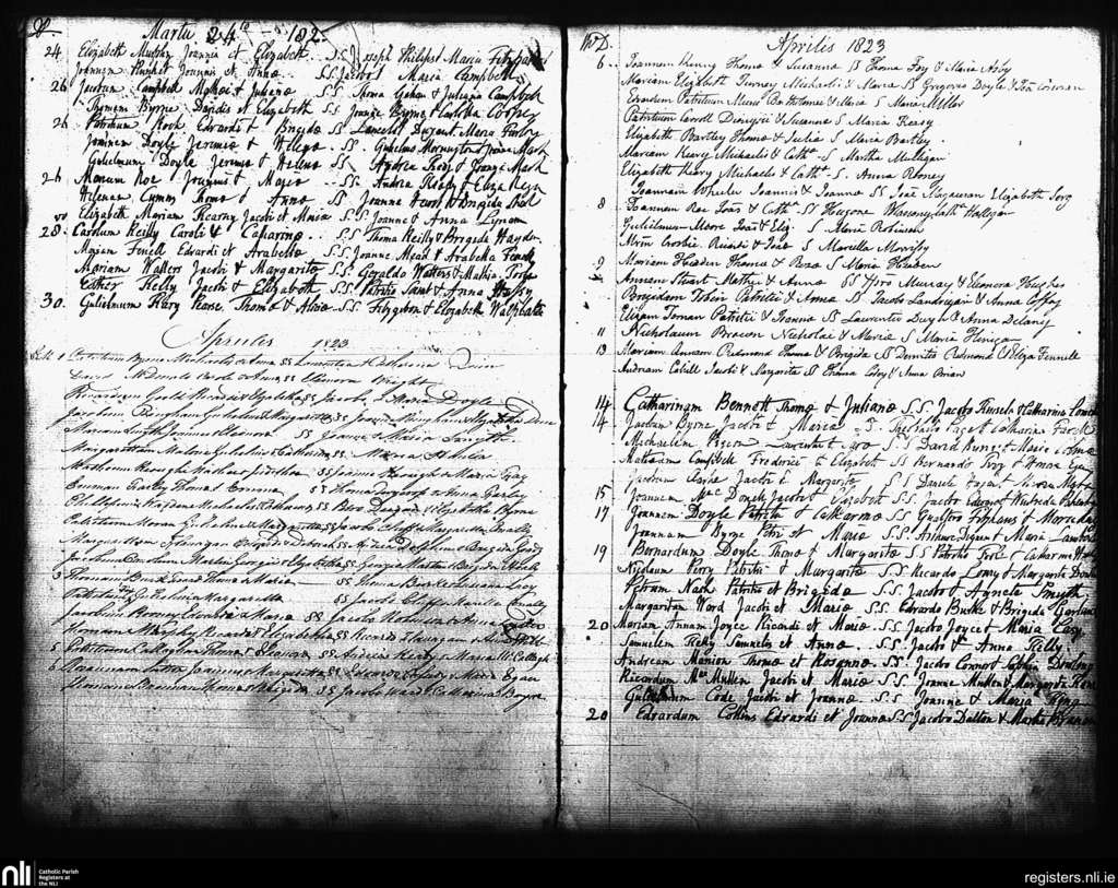 St. Andrew's, Dublin city; County of Dublin; Archdiocese of Dublin. Baptisms, Mar. 1823 to Apr. 1823