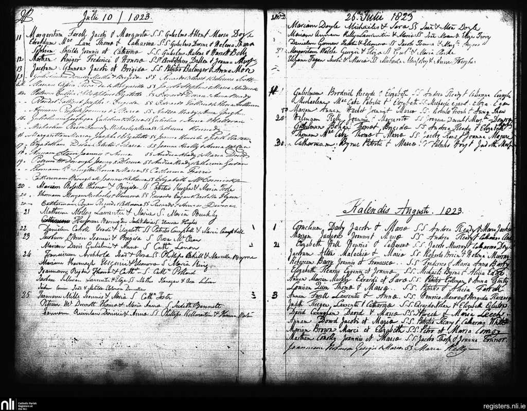 St. Andrew's, Dublin city; County of Dublin; Archdiocese of Dublin. Baptisms, July 1823 to Aug. 1823