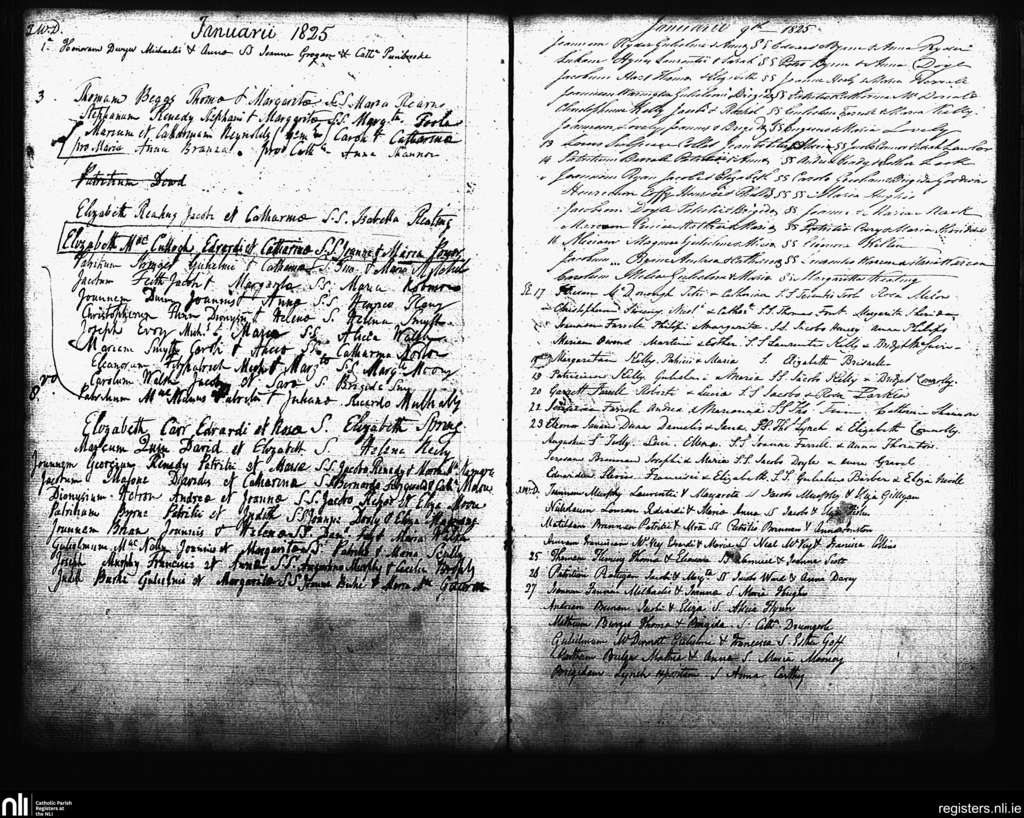 St. Andrew's, Dublin city; County of Dublin; Archdiocese of Dublin. Baptisms, Jan. 1825