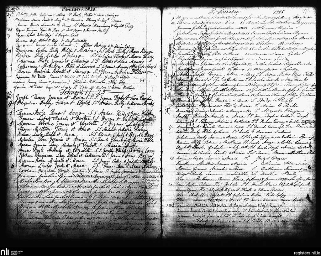 St. Andrew's, Dublin city; County of Dublin; Archdiocese of Dublin. Baptisms, Jan. 1825 to Feb. 1825