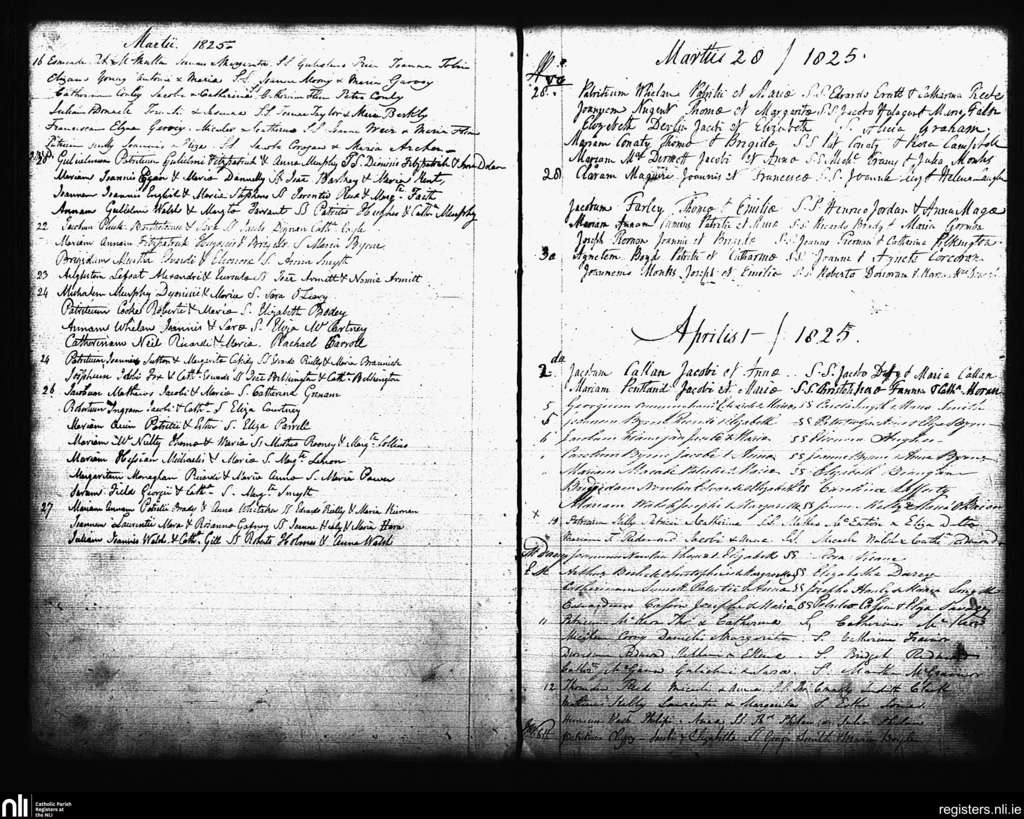 St. Andrew's, Dublin city; County of Dublin; Archdiocese of Dublin. Baptisms, Mar. 1825 to Apr. 1825