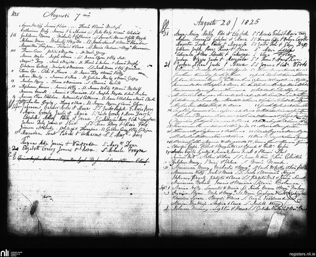 St. Andrew's, Dublin city; County of Dublin; Archdiocese of Dublin. Baptisms, Aug. 1825
