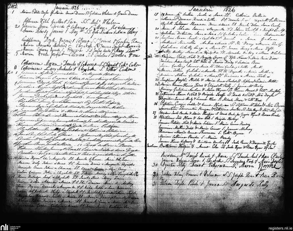 St. Andrew's, Dublin city; County of Dublin; Archdiocese of Dublin. Baptisms, Jan. 1826