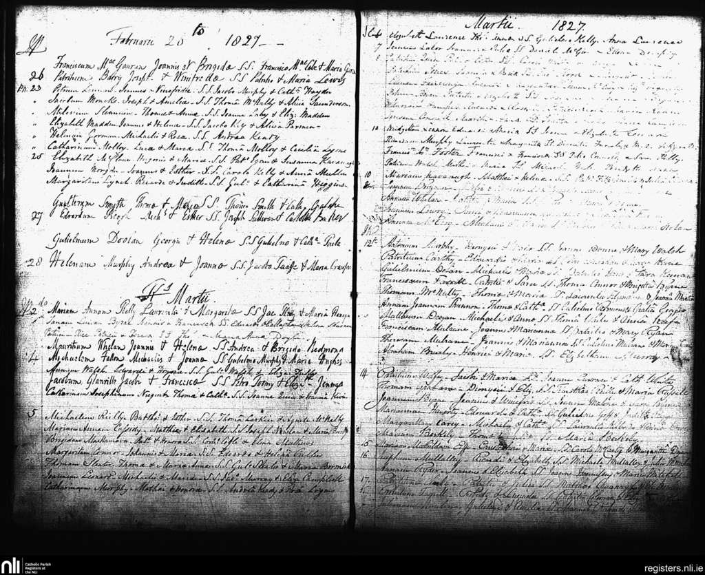 St. Andrew's, Dublin city; County of Dublin; Archdiocese of Dublin. Baptisms, Feb. 1827 to Mar. 1827