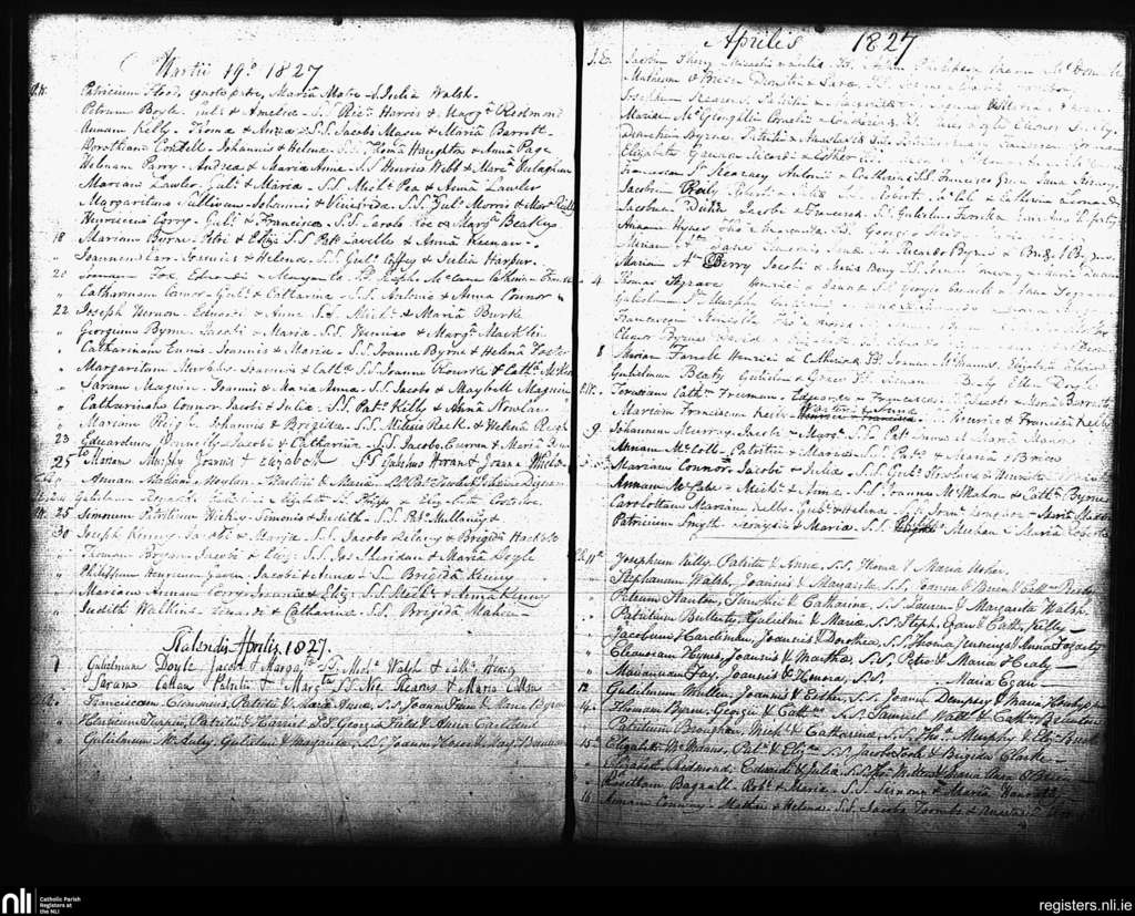 St. Andrew's, Dublin city; County of Dublin; Archdiocese of Dublin. Baptisms, Mar. 1827 to Apr. 1827