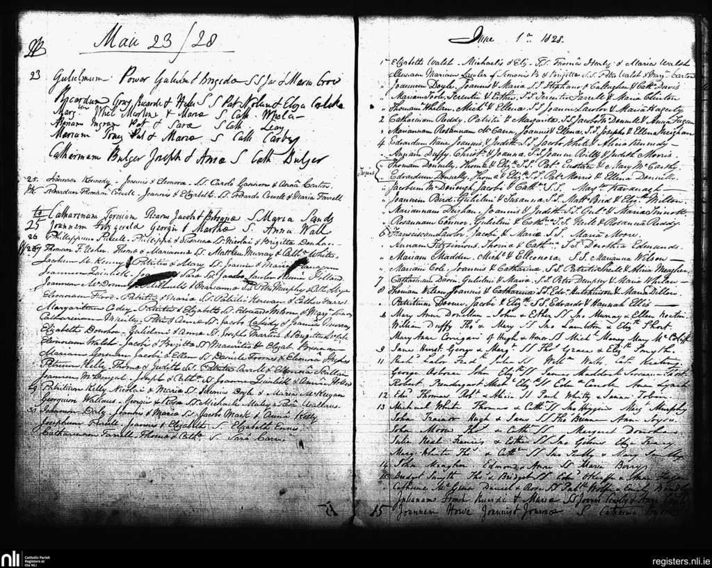 St. Andrew's, Dublin city; County of Dublin; Archdiocese of Dublin. Baptisms, May 1828 to June 1828