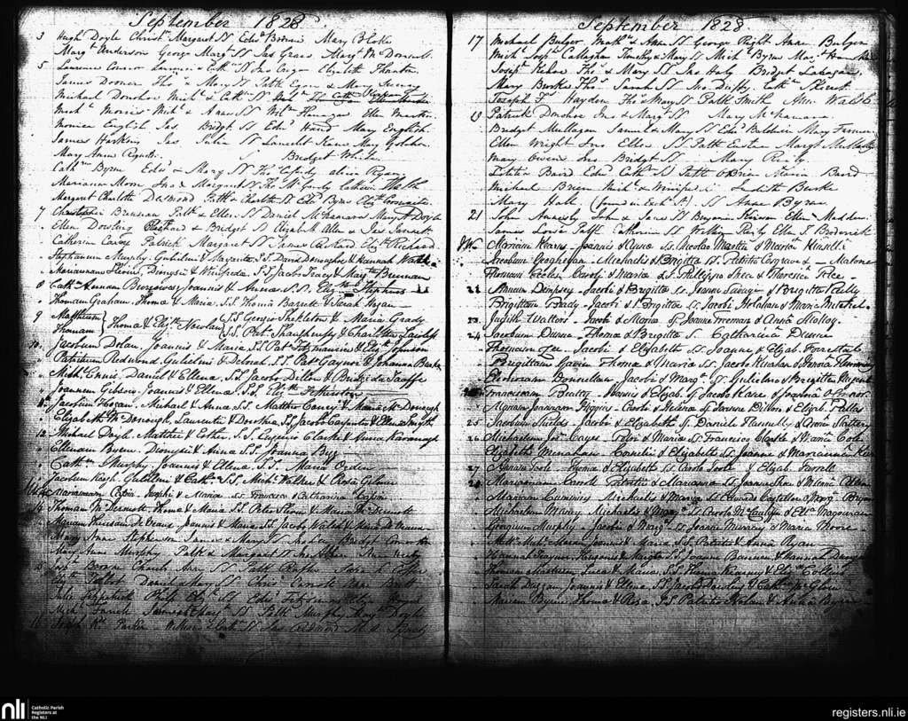 St. Andrew's, Dublin city; County of Dublin; Archdiocese of Dublin. Baptisms, Sep. 1828