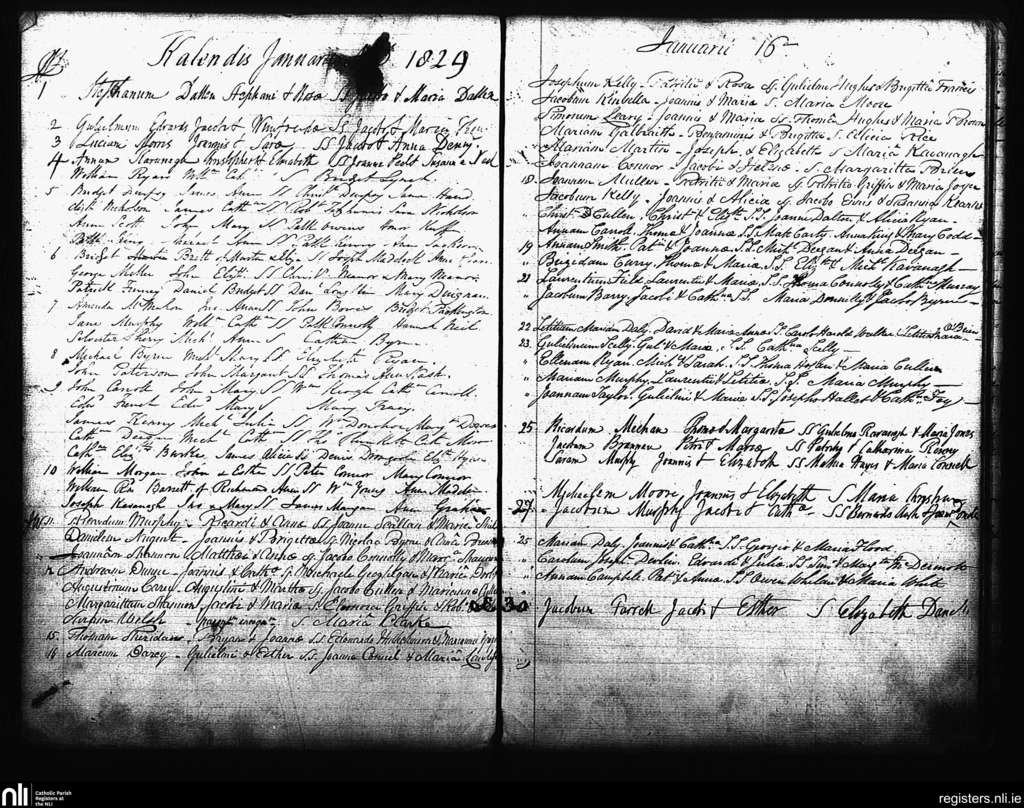 St. Andrew's, Dublin city; County of Dublin; Archdiocese of Dublin. Baptisms, Jan. 1829