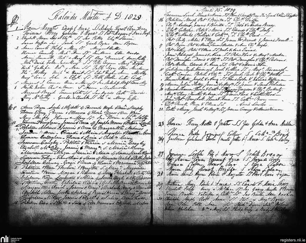 St. Andrew's, Dublin city; County of Dublin; Archdiocese of Dublin. Baptisms, Mar. 1829