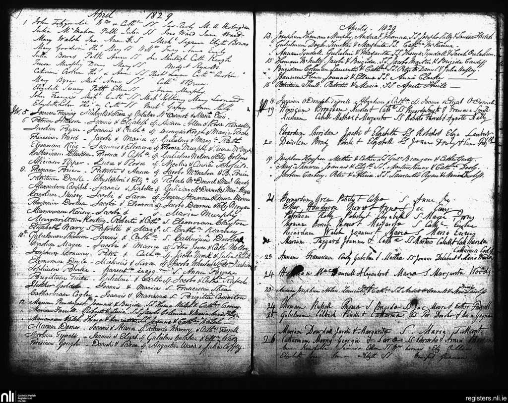St. Andrew's, Dublin city; County of Dublin; Archdiocese of Dublin. Baptisms, Apr. 1829