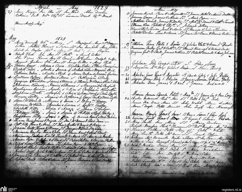 St. Andrew's, Dublin city; County of Dublin; Archdiocese of Dublin. Baptisms, Apr. 1829 to May 1829