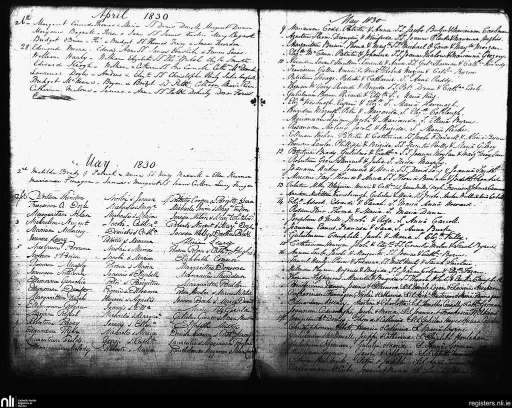 St. Andrew's, Dublin city; County of Dublin; Archdiocese of Dublin. Baptisms, Apr. 1830 to May 1830