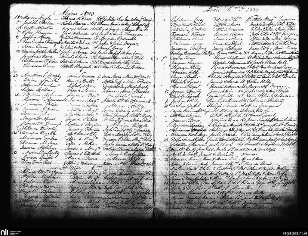 St. Andrew's, Dublin city; County of Dublin; Archdiocese of Dublin. Baptisms, Apr. 1830 to June 1830