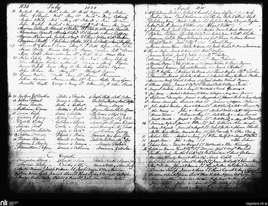 St. Andrew's, Dublin city; County of Dublin; Archdiocese of Dublin. Baptisms, July 1830 to Aug. 1830