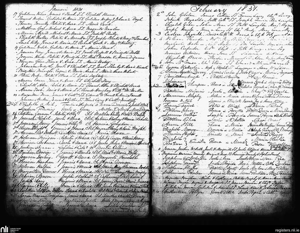 St. Andrew's, Dublin city; County of Dublin; Archdiocese of Dublin. Baptisms, Jan. 1831 to Feb. 1831