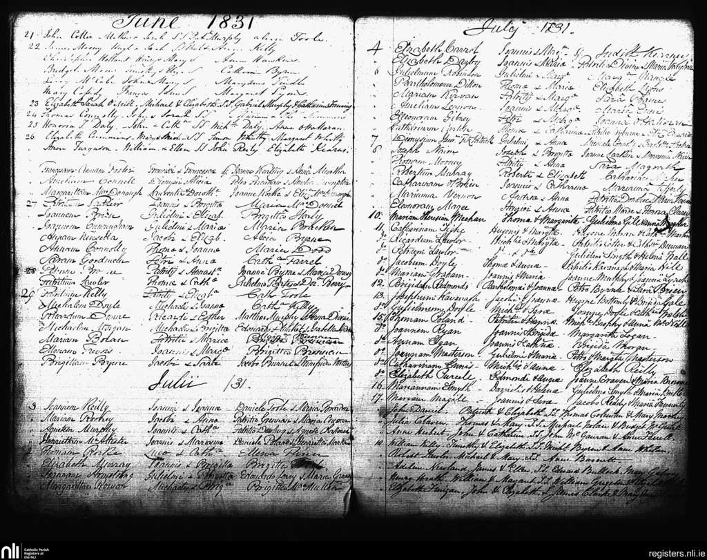 St. Andrew's, Dublin city; County of Dublin; Archdiocese of Dublin. Baptisms, June 1831 to July 1831