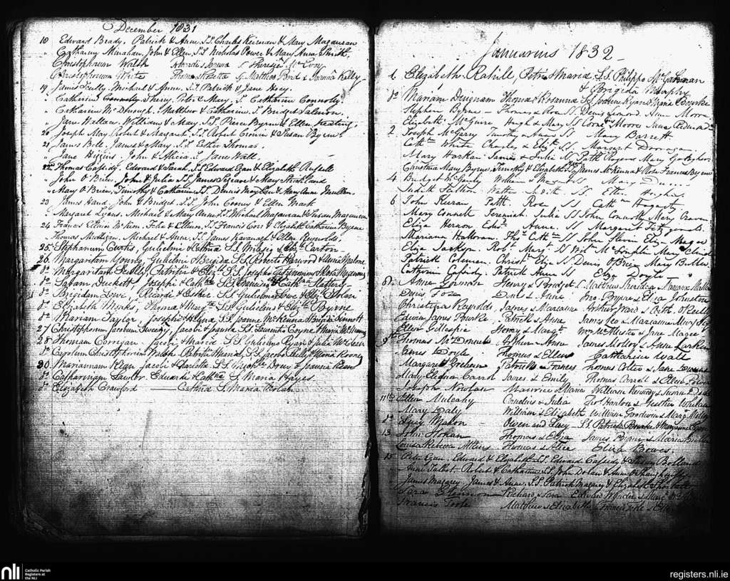 St. Andrew's, Dublin city; County of Dublin; Archdiocese of Dublin. Baptisms, Dec. 1831 to Jan. 1832