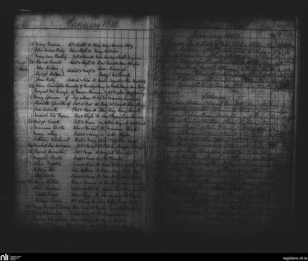 St. Andrew's, Dublin city; County of Dublin; Archdiocese of Dublin. Baptisms, Jan. 1832 to Feb. 1832