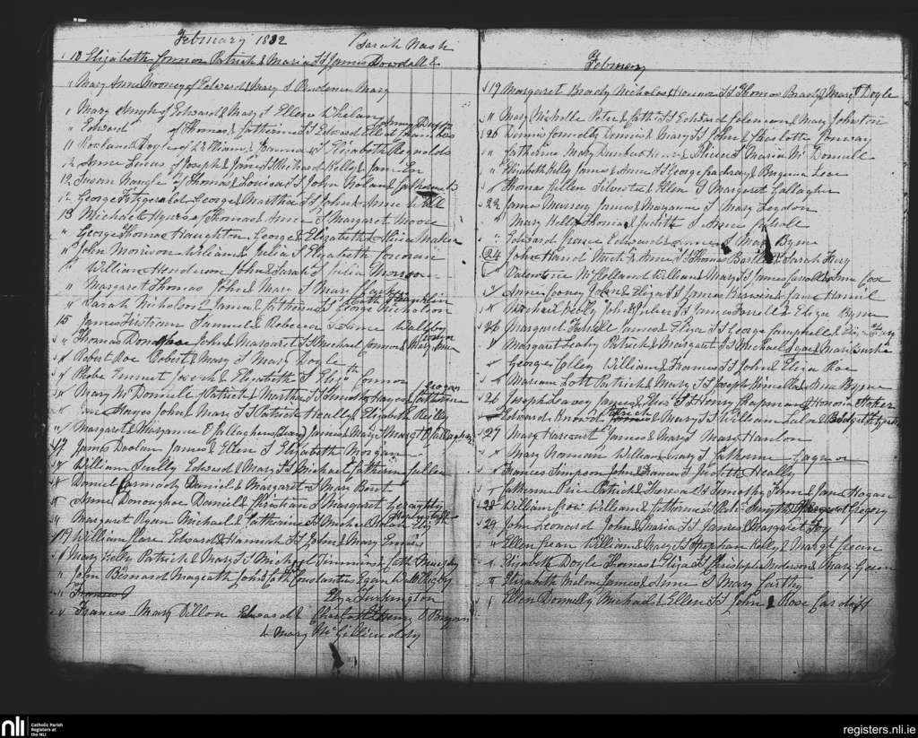 St. Andrew's, Dublin city; County of Dublin; Archdiocese of Dublin. Baptisms, Feb. 1832