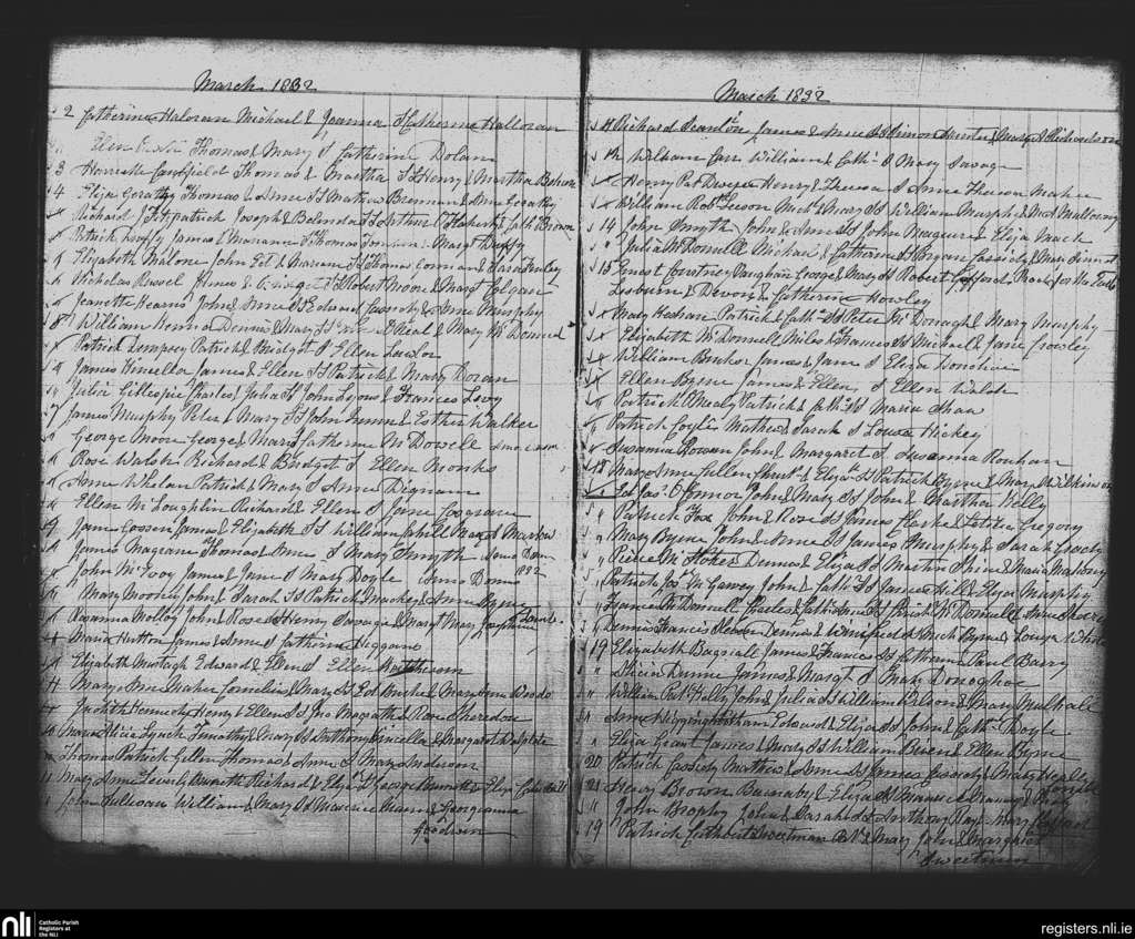 St. Andrew's, Dublin city; County of Dublin; Archdiocese of Dublin. Baptisms, Mar. 1832