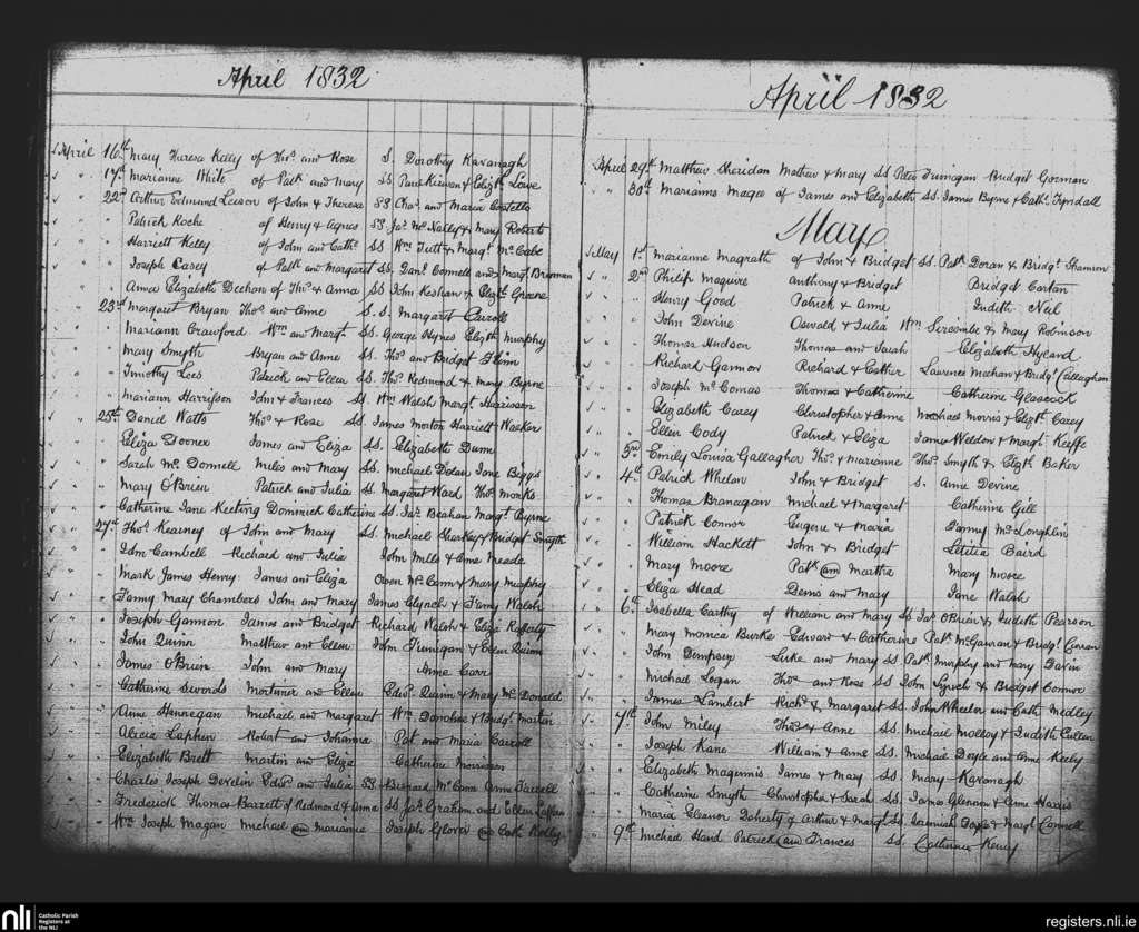 St. Andrew's, Dublin city; County of Dublin; Archdiocese of Dublin. Baptisms, Apr. 1832 to May 1832